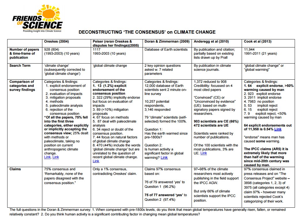 Comment: I'm not ready to concede the 1st point. For a chart on climate change "consensus" see.